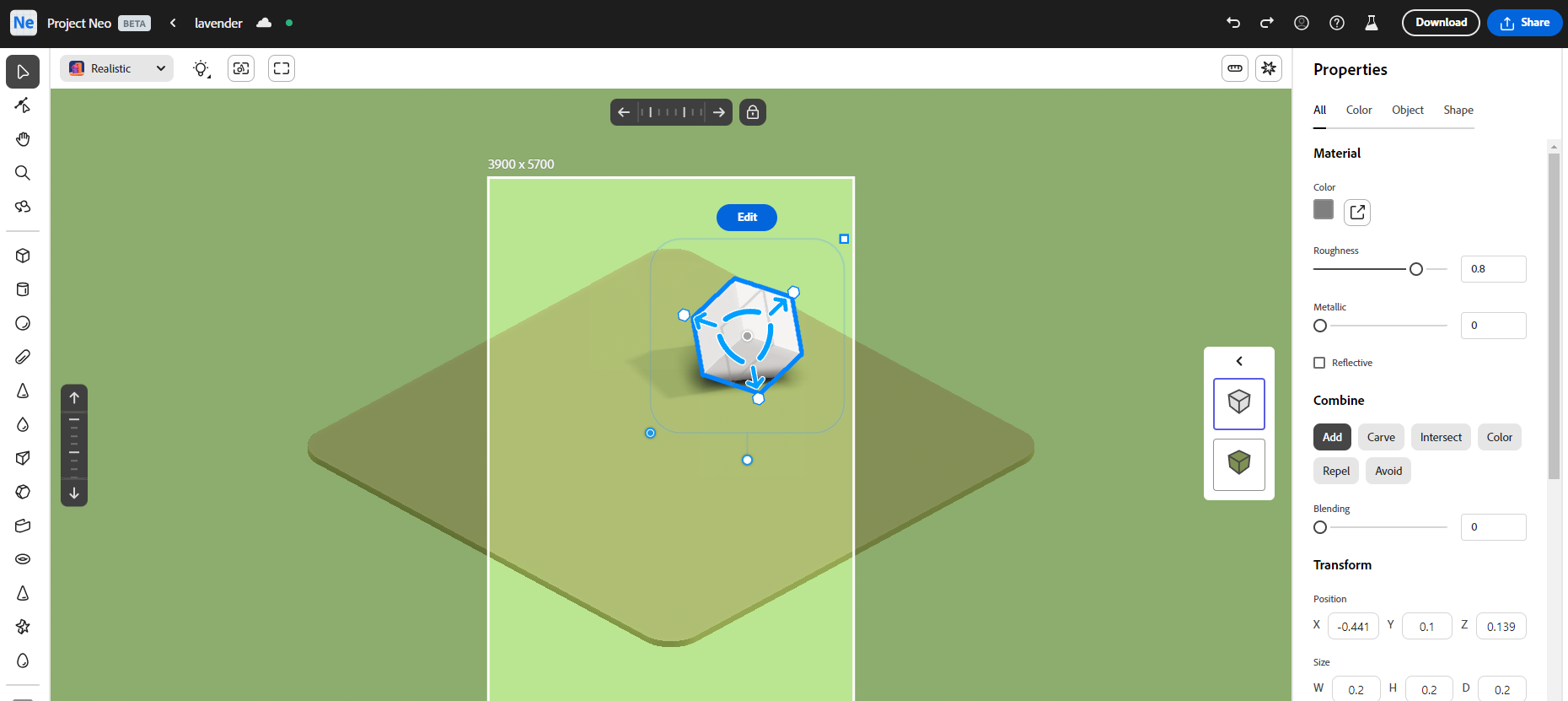 프로젝트 네오는 어도비가 선보인 차세대 3D 디자인 툴로,