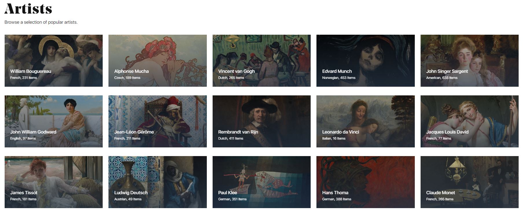 Artvee는 고전 미술부터 현대 미술에 이르기까지 다양한 매체의 작품이 모여 있어