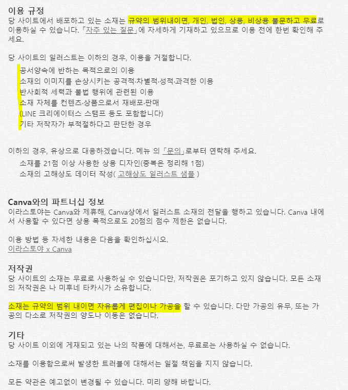이라스토야의 일러스트는 개인적 및 상업적 용도로 자유롭게 사용할 수 있지만,