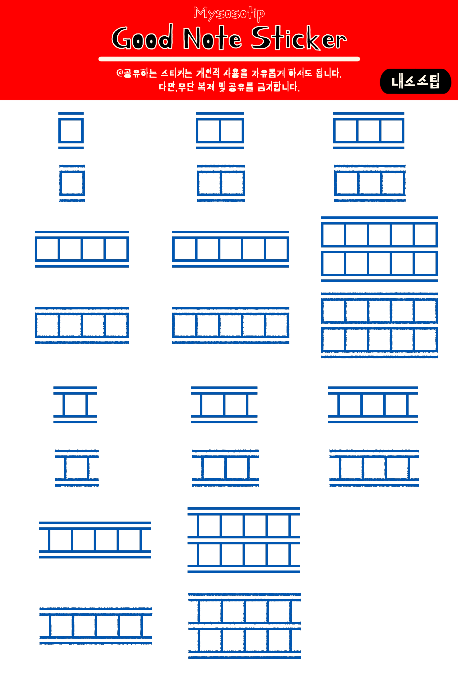 굿노트 스티커 무료 png 검정 빨강 파랑 원고지 느낌 디지털 파일 goodnote sticker free share download