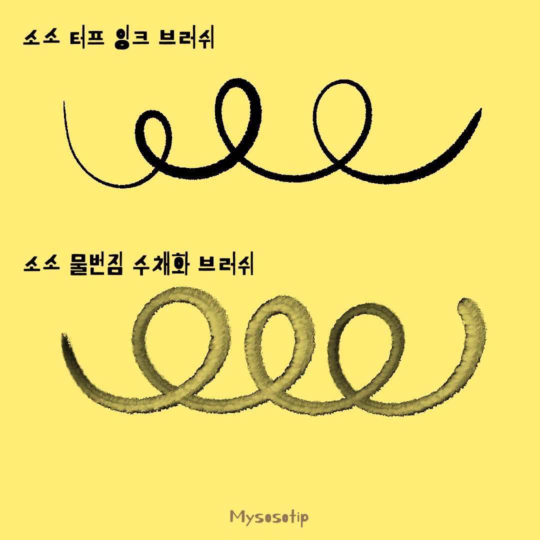 오늘 공유 드리는 '소소 터프 잉크' 와 ' 물번짐 수채화' 브러쉬로 작업 했습니다.