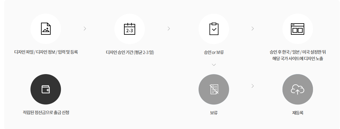 - 디자인 등록 절차는 업로드시