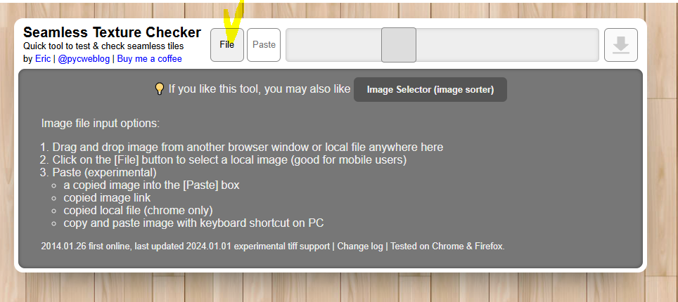 💡 If you like this tool, you may also like Image Selector (image sorter) Image file input options: Drag and drop image from another browser window or local file anywhere here Click on the [File] button to select a local image (good for mobile users) Pas