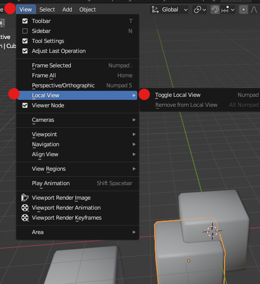 로컬 뷰는 블렌더에서 선택한 오브젝트를 화면에 단독으로 표시하여