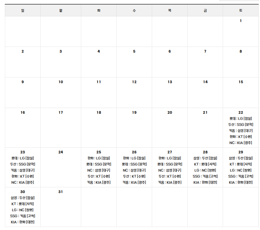 개막 이후 일정이 궁금하다면 아래 KBO 홈페이지 참고해 주세요.