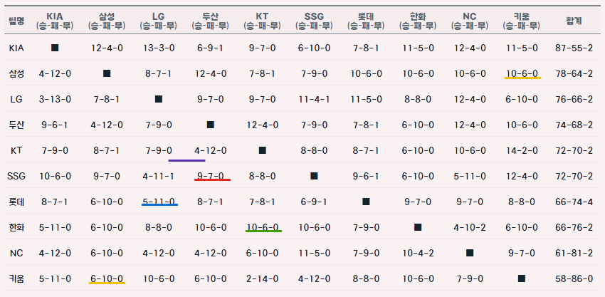 팀간승패 표 입니다.
