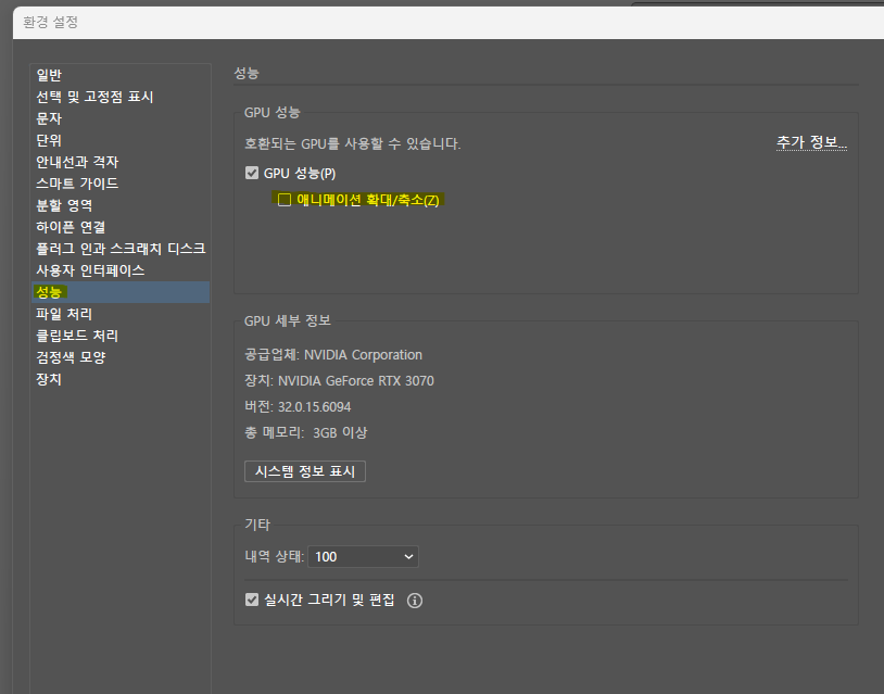 일러스트레이터 줌/아웃 버벅거림 해결 방법