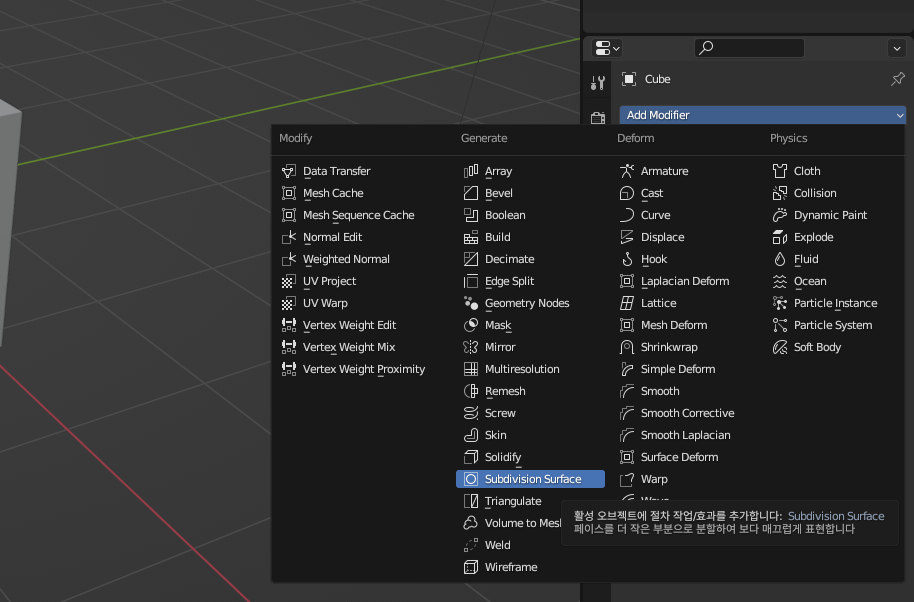 블렌더에서 섭디비전 서피스(Subdivision Surface Modifier)는