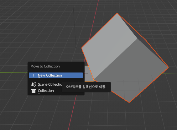 - M 키를 누르면 선택한 오브젝트를 새로운 컬렉션으로 이동하거나 기존 컬렉션에 추가할 수 있습니다.