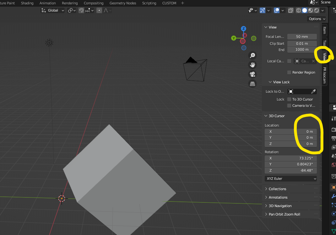 2. View > 3D Cursor 섹션으로 이동합니다.
