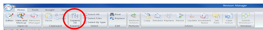 Revision Manager 창에서 "Expand All" 버튼을 클릭하여 어셈블리에 포함 된 모든 하위 파트를 펼칩니다.