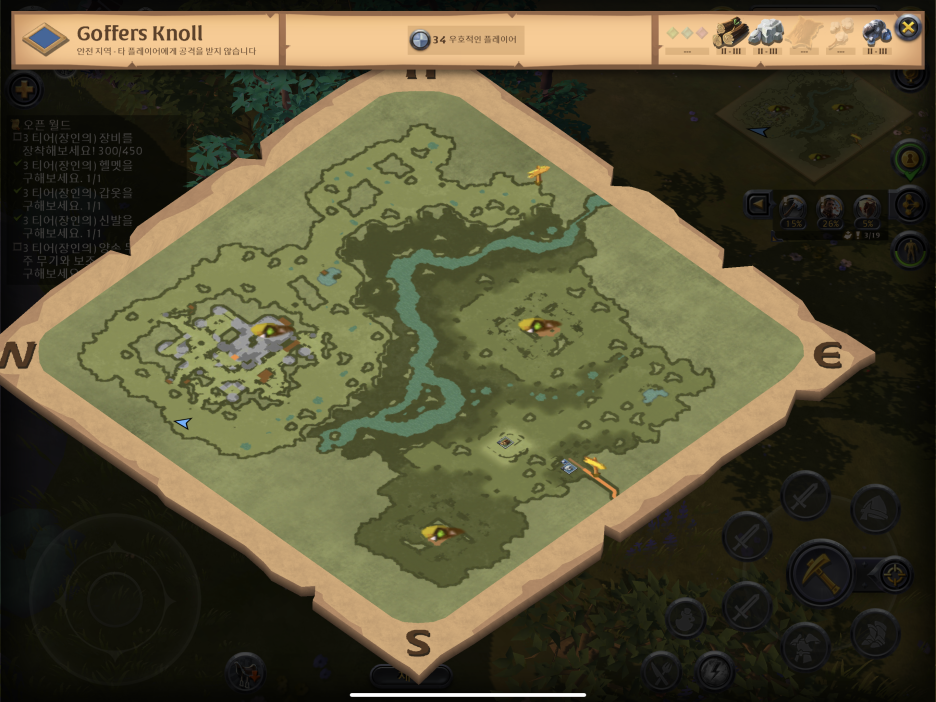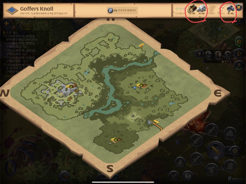 - 사냥터 맵을 열어보면 상단 오른쪽에 채집 가능한 자원이 표시됩니다.
