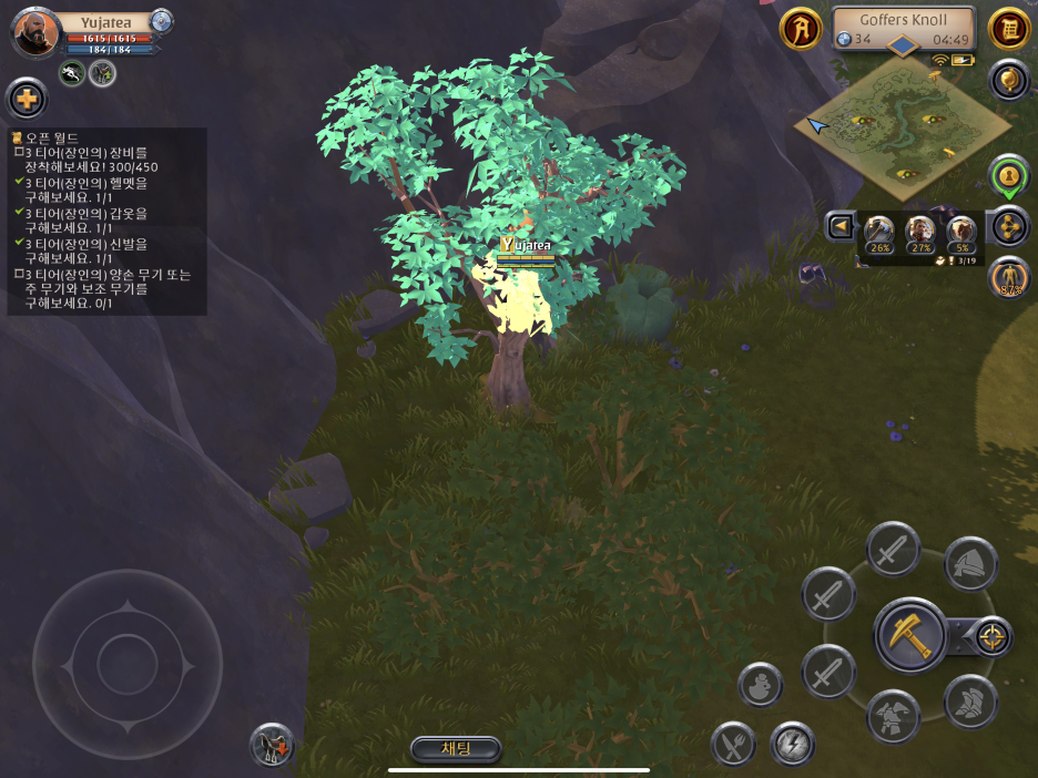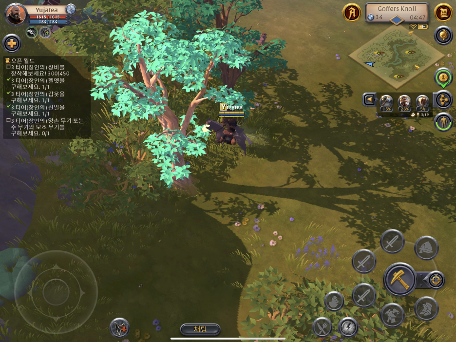 활을 들고 퀘스트를 하던 중 통 밤나무를 찾아야 했는데,