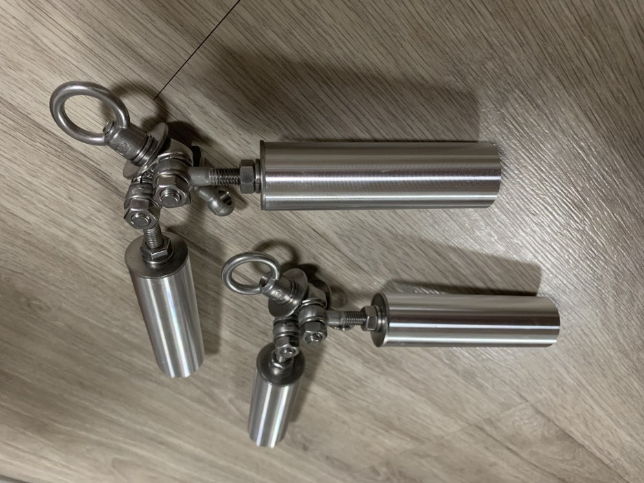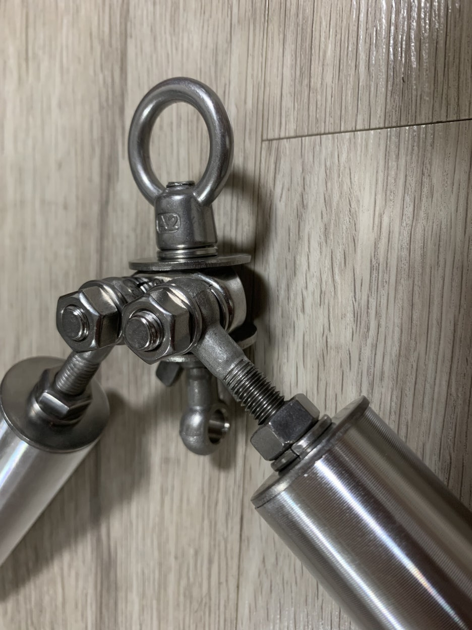 3.클립 U 모양에 1번 만든거 하나씩 끼우고 풀리지 않도록 스프링 와서 너트로 조여줍니다.