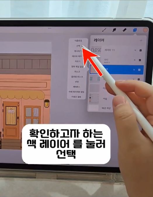 레이어 창을 눌러 [선택] 합니다.