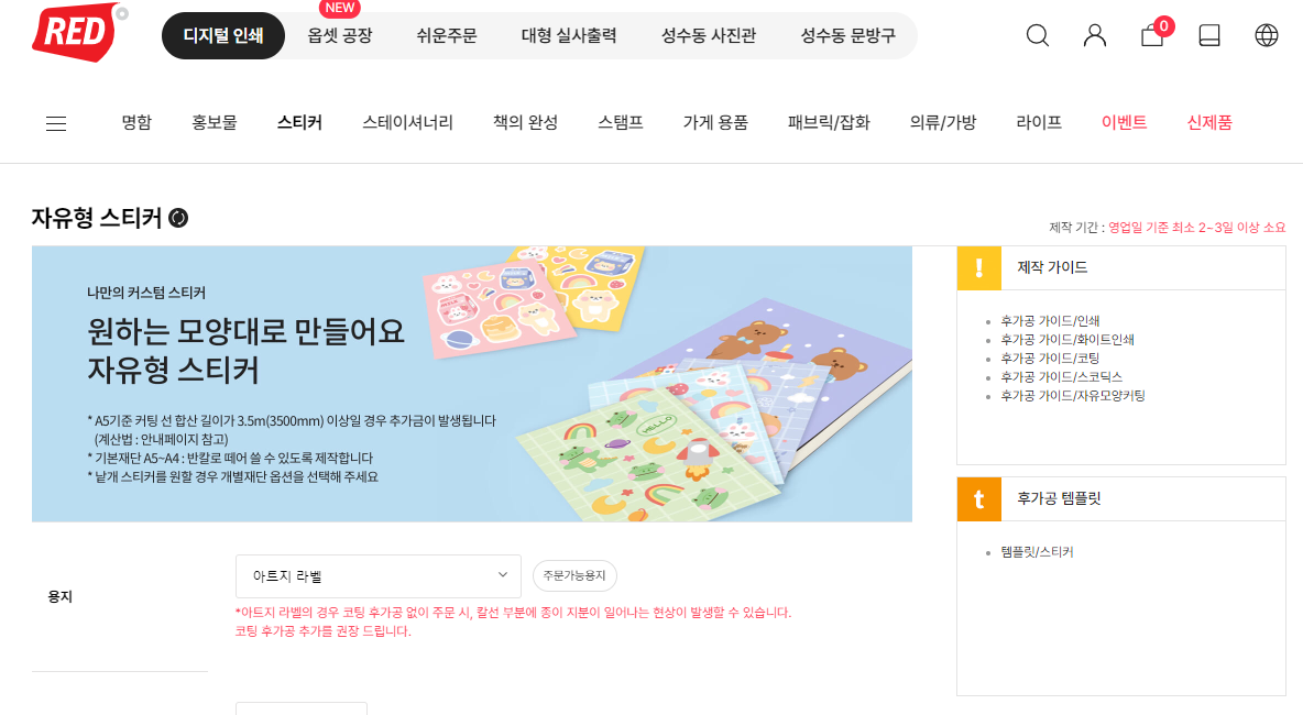 - 스티커의 형태가 복잡한 모양의 도무송 스티커를 만들 때 이곳에서 주문하는 것이 좀 더 저렴해요.