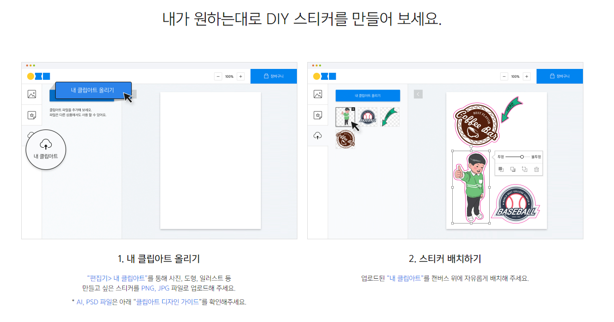 샘플로 제작해 보거나,내가 만든 스티커를 개인 소장하거나 주변에 나눔 할 경우에 사용해 보시면 좋을것 같아요.