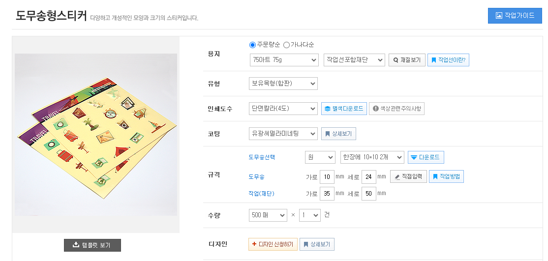 - 스티커의 형태가 복잡한 모양의 도무송 스티커를 만들 때 이곳에서 주문하는 것이 좀 더 저렴해요.
