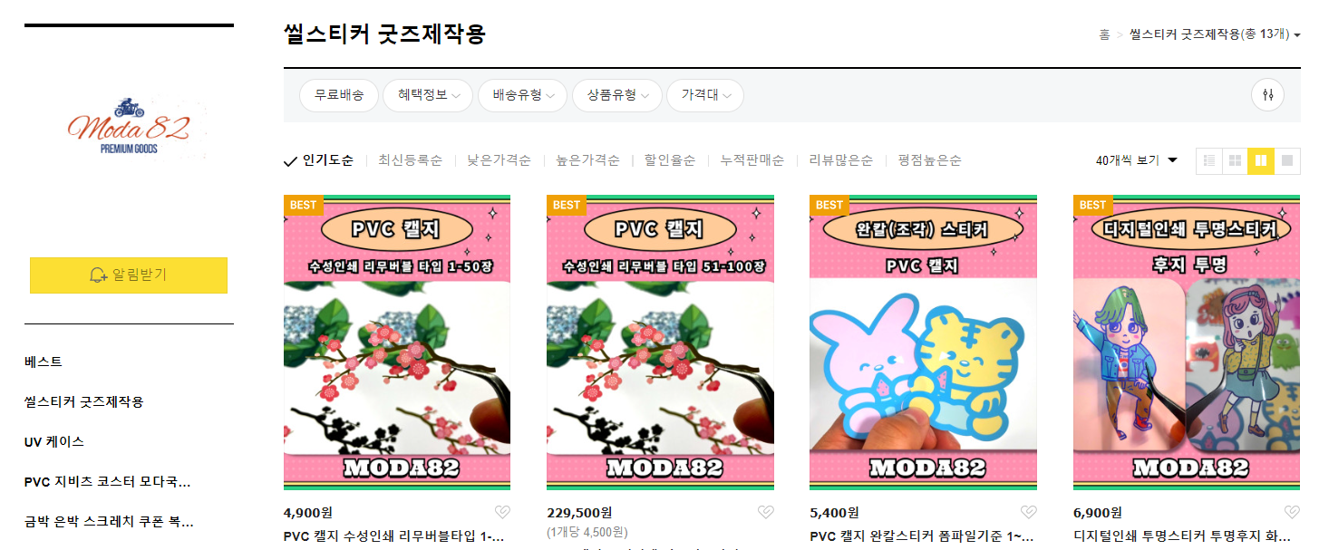 굿즈 전문업체 모다82 스티커 지비츠 코스터 커스텀의류 폰케이스 커스텀씰스탬프..